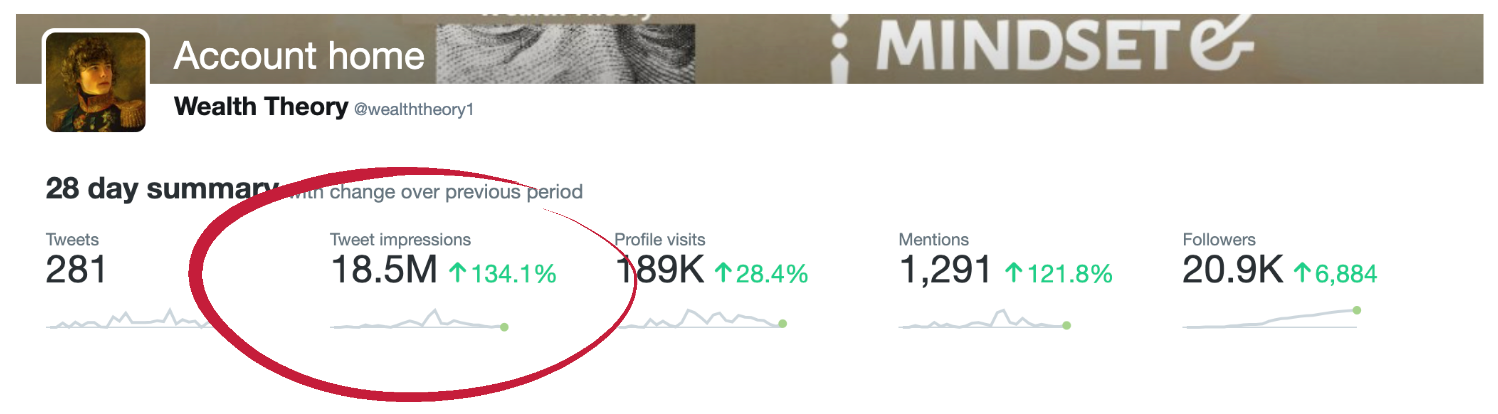 Over the last 30 days, my content has been seen over 18,000,000 times on Twitter. My account has grown to 20,000+ followers in just a few months.